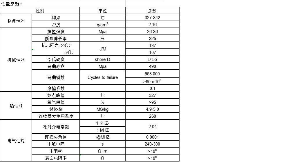 聚四氟乙烯(PTFE)具有極優(yōu)的化學(xué)穩(wěn)定性,能耐所有強(qiáng)酸、強(qiáng)堿、強(qiáng)氧化劑,與各種有機(jī)溶劑也不發(fā)生作用。PTFE使用溫度范圍較廣,常壓下可以長期應(yīng)用于-180℃~250℃,在250℃高溫下處理1000h后,其力學(xué)性能變化很小。PTFE具有很低的摩擦因數(shù),是一種良好的減摩,自潤滑材料,其靜摩擦系數(shù)小于動(dòng)摩擦系數(shù),因此用以制作軸承有啟動(dòng)阻力小,運(yùn)轉(zhuǎn)平滑的優(yōu)點(diǎn)。由于PTFE無極性,耐熱及不吸水,因此又是一種優(yōu)良的電絕緣材料。還具有優(yōu)良的耐老化性,不黏性及不燃性。