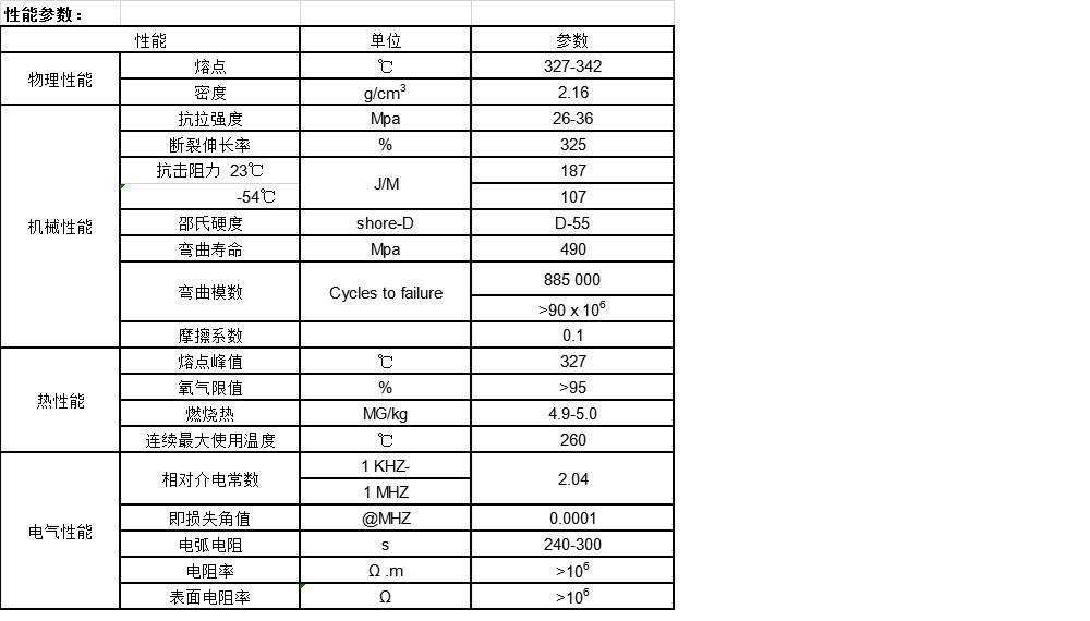 聚四氟乙烯(PTFE)具有極優的化學穩定性,能耐所有強酸、強堿、強氧化劑,與各種有機溶劑也不發生作用。PTFE使用溫度范圍較廣,常壓下可以長期應用于-180℃~250℃,在250℃高溫下處理1000h后,其力學性能變化很小。PTFE具有很低的摩擦因數,是一種良好的減摩,自潤滑材料,其靜摩擦系數小于動摩擦系數,因此用以制作軸承有啟動阻力小,運轉平滑的優點。由于PTFE無極性,耐熱及不吸水,因此又是一種優良的電絕緣材料。還具有優良的耐老化性,不黏性及不燃性。