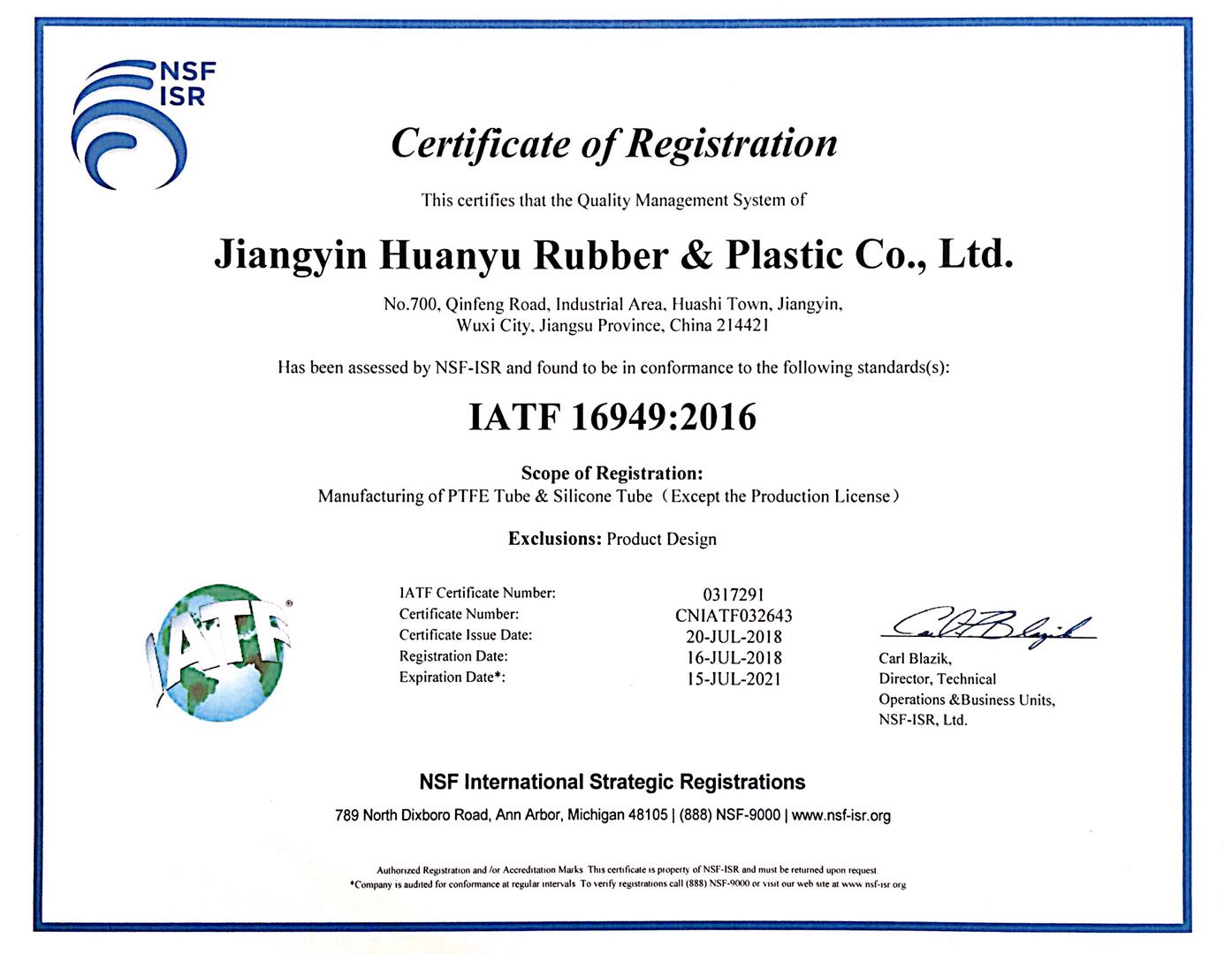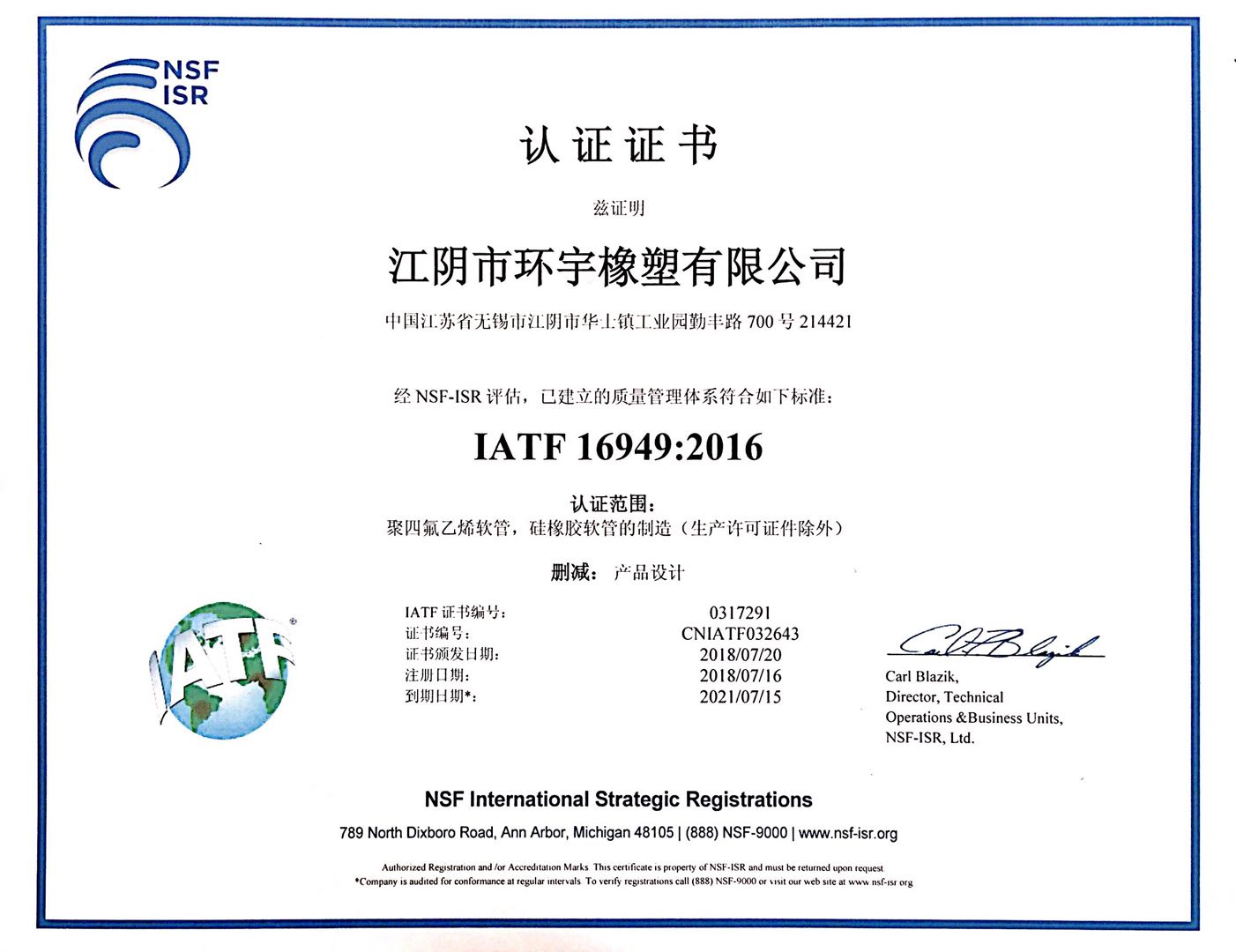 IATF證書-英文 / IATF證書-中文 / 氟塑料協會證書